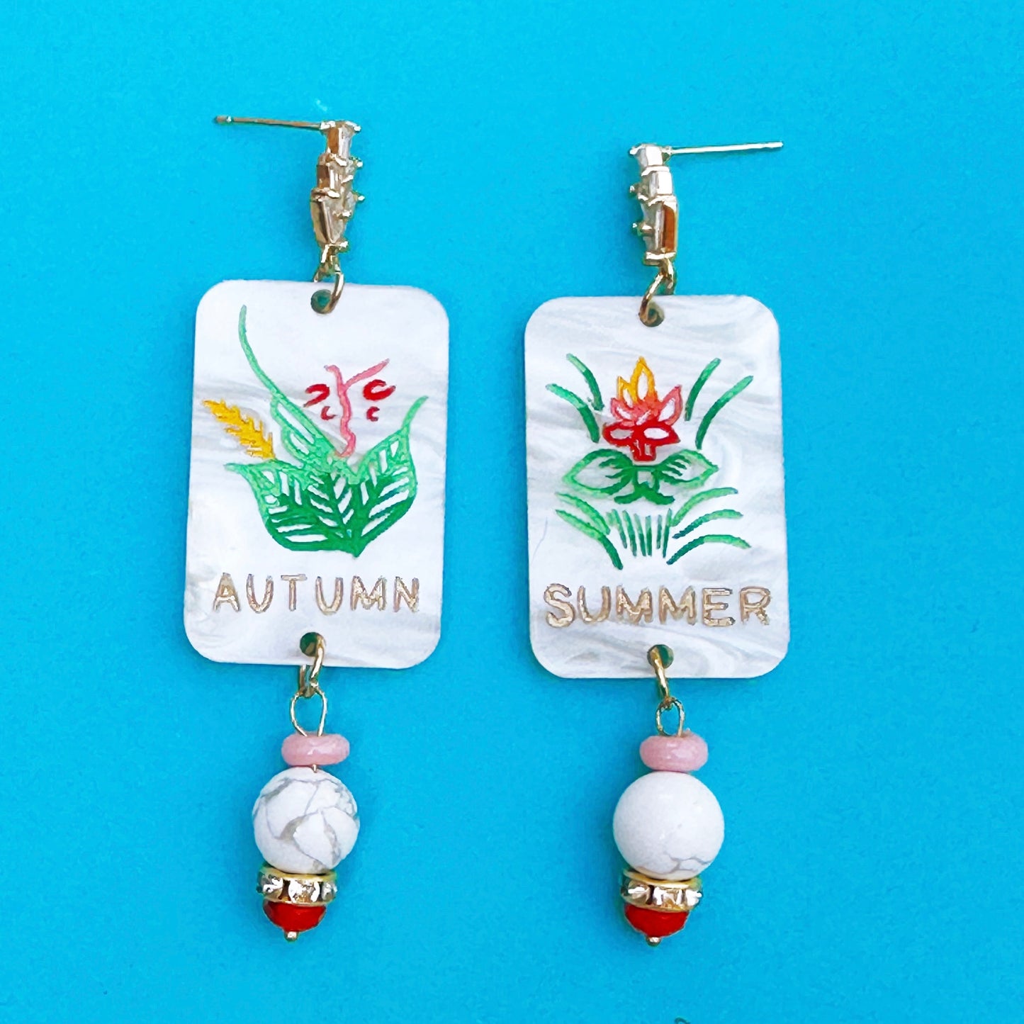 Seasons Flower Mahjong Dangle Earrings