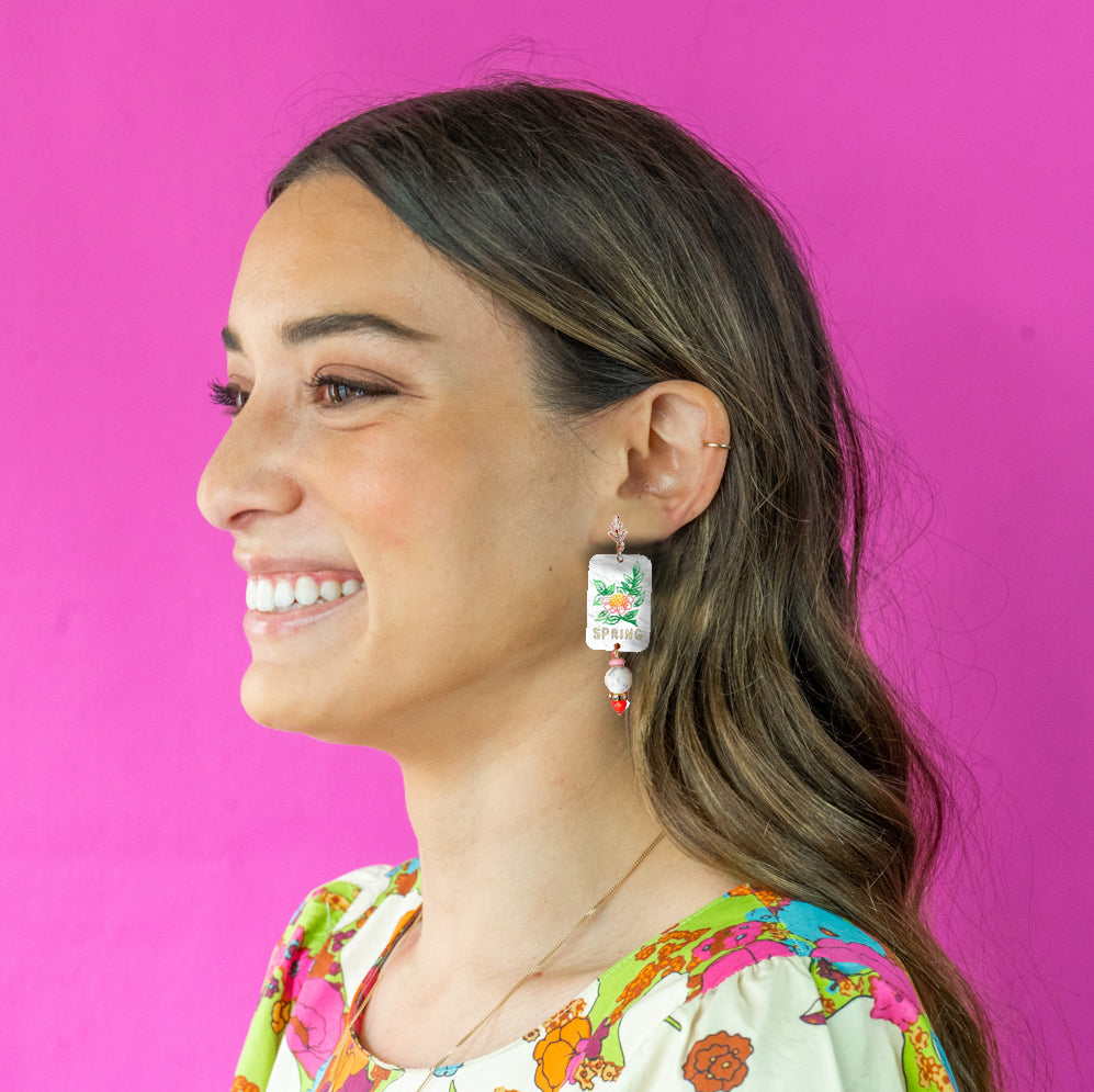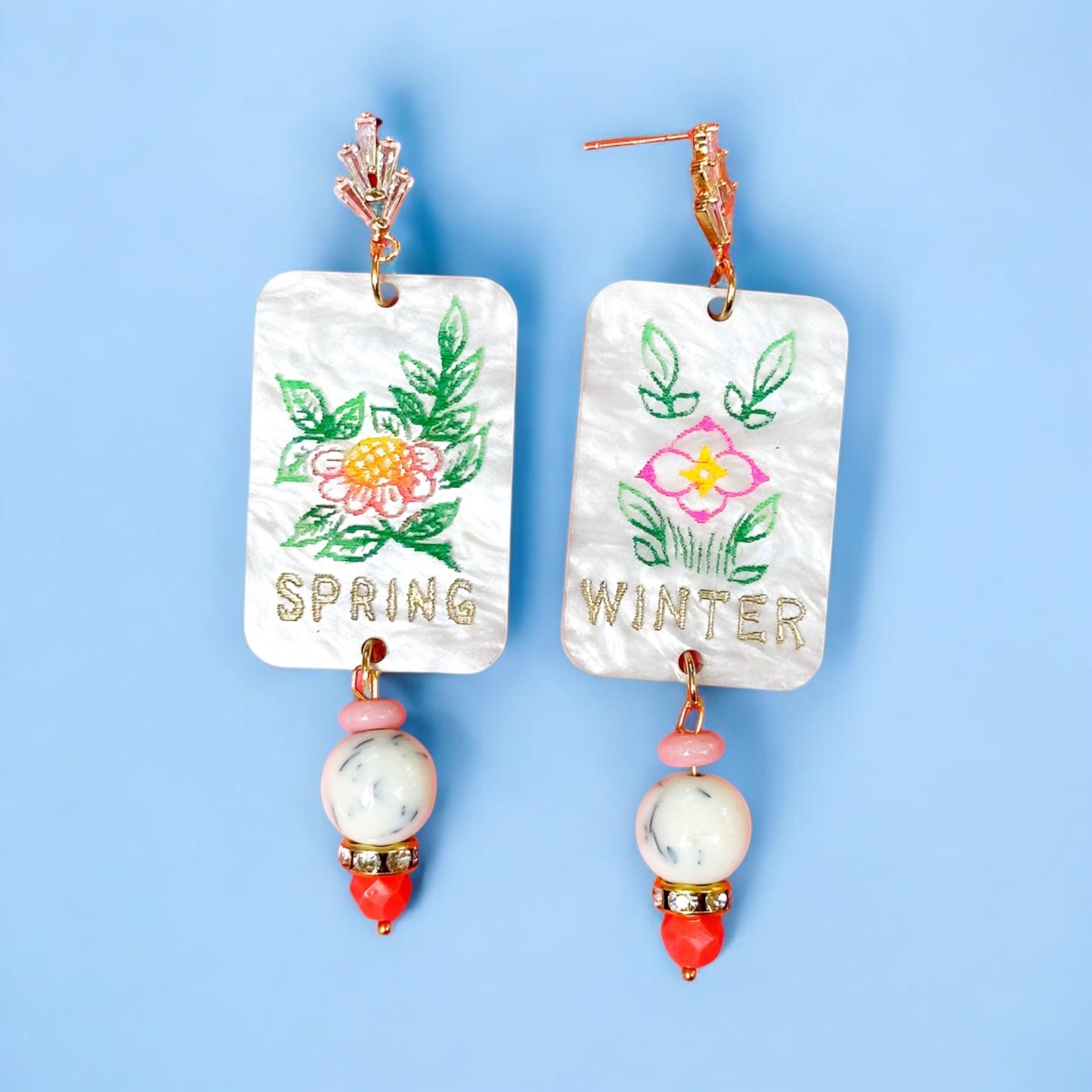 Mahjong's everyone's favorite game right now, and our Mahjong Collection jewelry pieces are made with mahjong enthusiasts in mind. Lightweight and easy to wear these earrings are made to reflect the beautiful tiles and joy of the game. Pick your seasons to customize your earrings. All of our earrings are hand made in Kansas City from quality acrylic, with gold plated, nickel free findings.