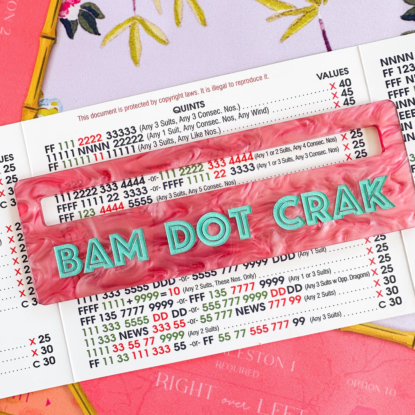 Take your game to the next level with our mahjong line readers. Made with official American Mahjong cards in mind, these readers will help you pick a line (or two to play). Our readers are made of nice weighty acrylic, and are engraved with your message. These custom readers are the perfect gift for your mahjong group, girls trip, or other special events. Choose your acrylic type, your font, and font colors.